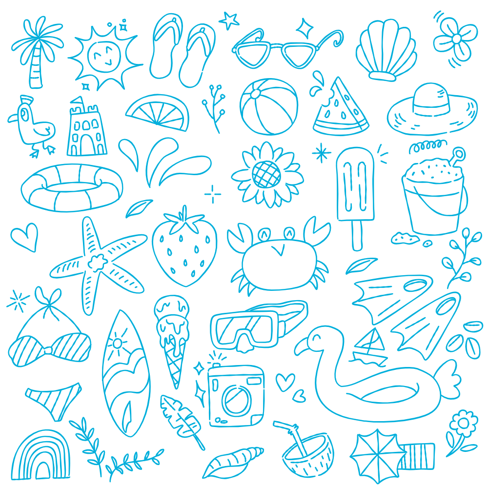 Free Vector/ Set of Cute Summer Time Doodle Draw